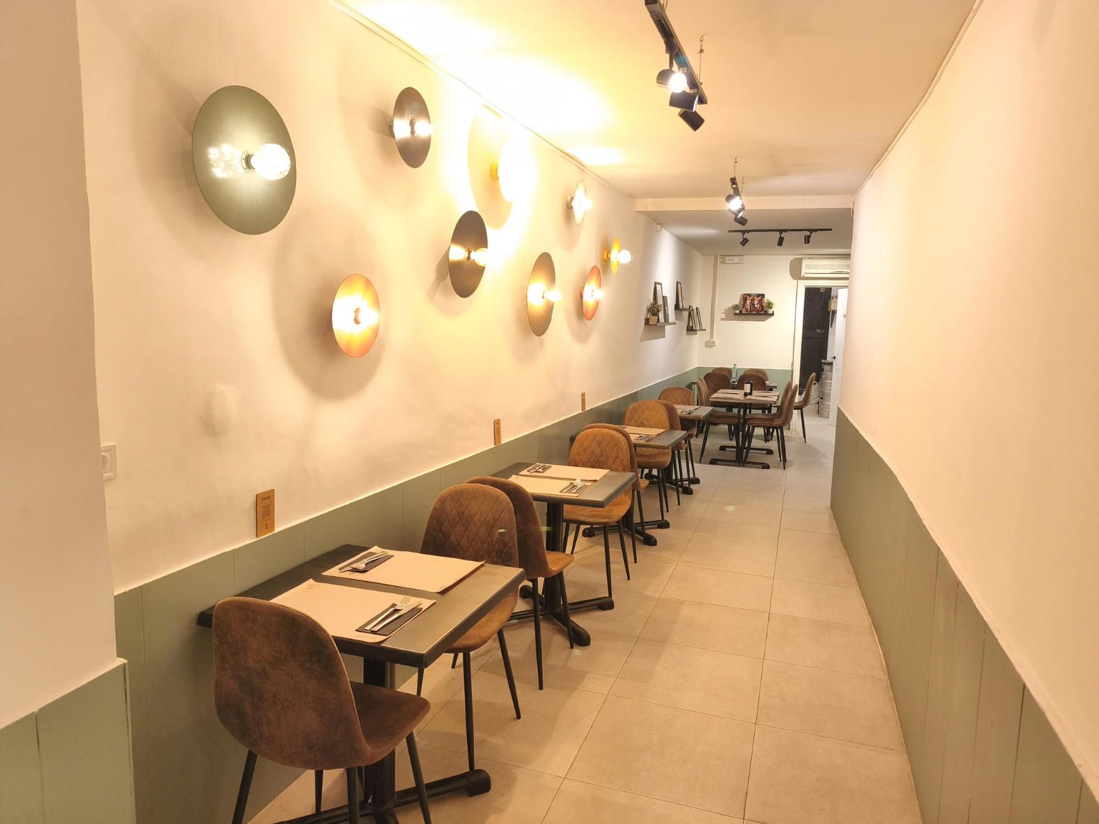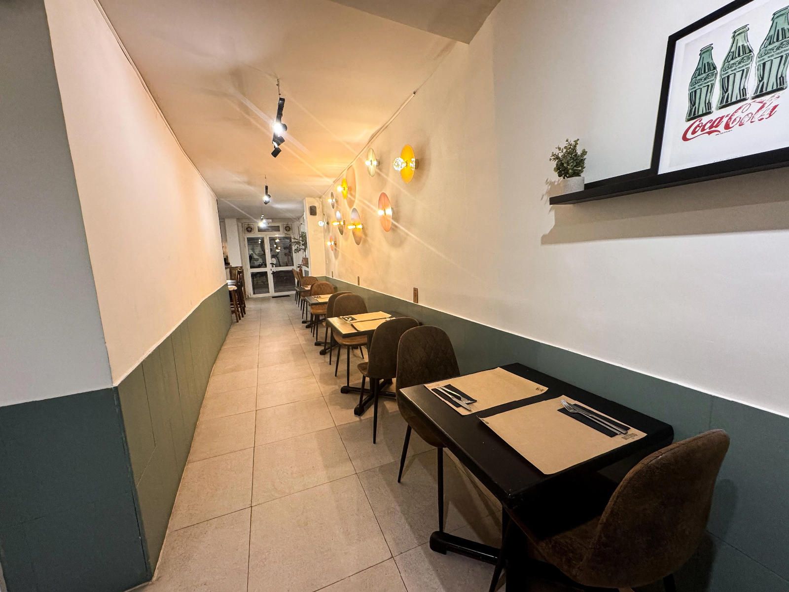 El aforo interior autorizado es de 34 personas, distribuidas en una sala funcional y bien aprovechada que combina zona de comedor, barra de servicio y cocina equipada. Aunque el local no dispone de terraza exterior, su ubicación en una calle peatonal de alto tránsito, junto al Arc de Triomf y a escasos minutos del Born Cultural Centre, compensa ampliamente esta característica, atrayendo a un flujo constante de residentes, turistas y trabajadores de la zona.