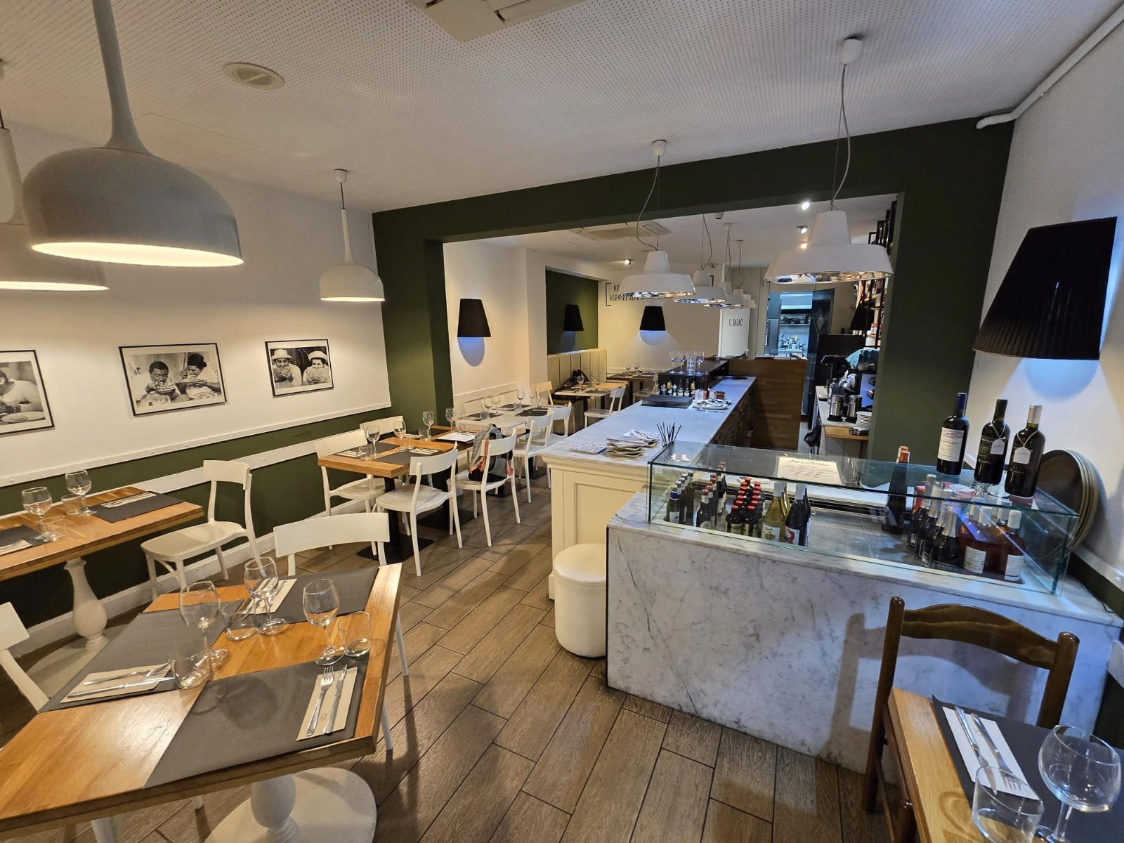 El aforo interior autorizado es de 42 personas, distribuidas en una sala diáfana y moderna, que combina zona de comedor, barra de servicio y cocina profesional completamente equipada con salida de humos. La disposición del espacio facilita un flujo operativo ágil y una experiencia cómoda para el cliente, adaptable a distintos conceptos gastronómicos y formatos de servicio.